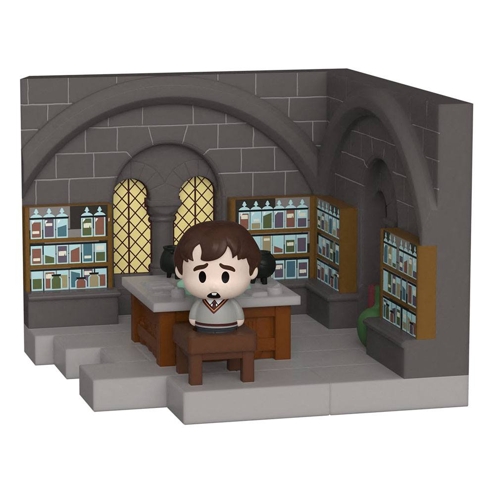 Cada figura incluye una sección con un lugar o escenario para formar un diorama de la sala de clases.